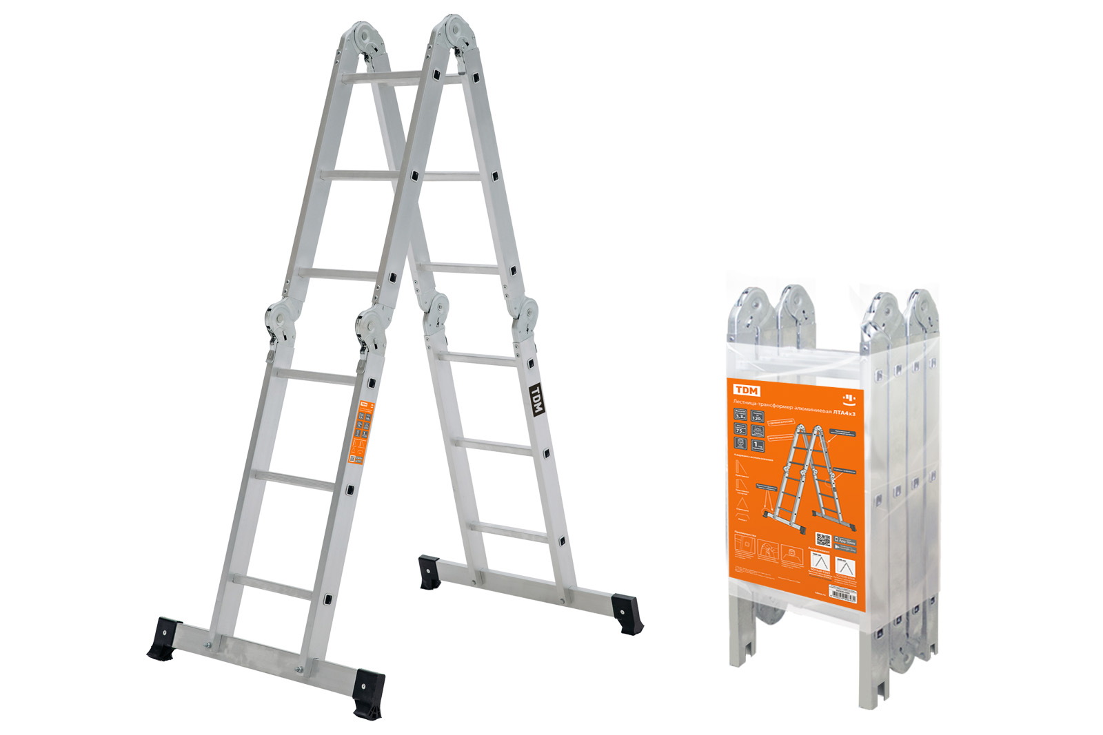 Лестница-трансформер алюминиевая ЛТА4х3, 4 секции по 3 ступени, h=330/160/92 см, 10,4 кг TDM