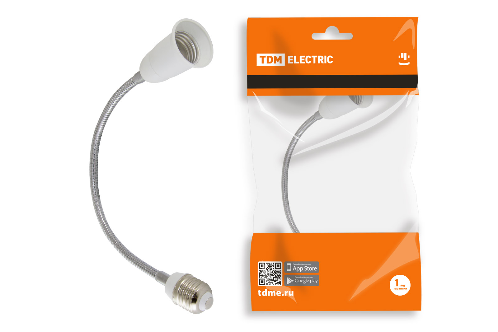 Переходник Е27-Е27 гибкий 300мм, белый, TDM